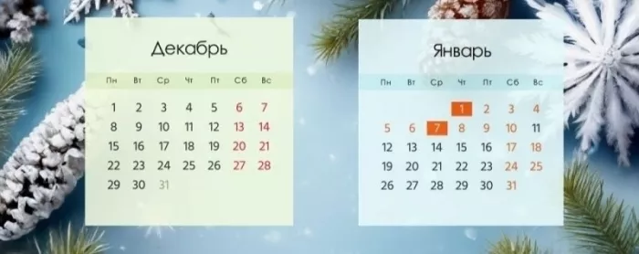 В соответствии со статьей 112 Трудового кодекса Российской Федерации (далее ТК РФ) 1, 2, 3, 4, 5, 6 и 8 января Новогодние каникулы, 7 января Рождество Христово являются нерабочими праздничными днями.