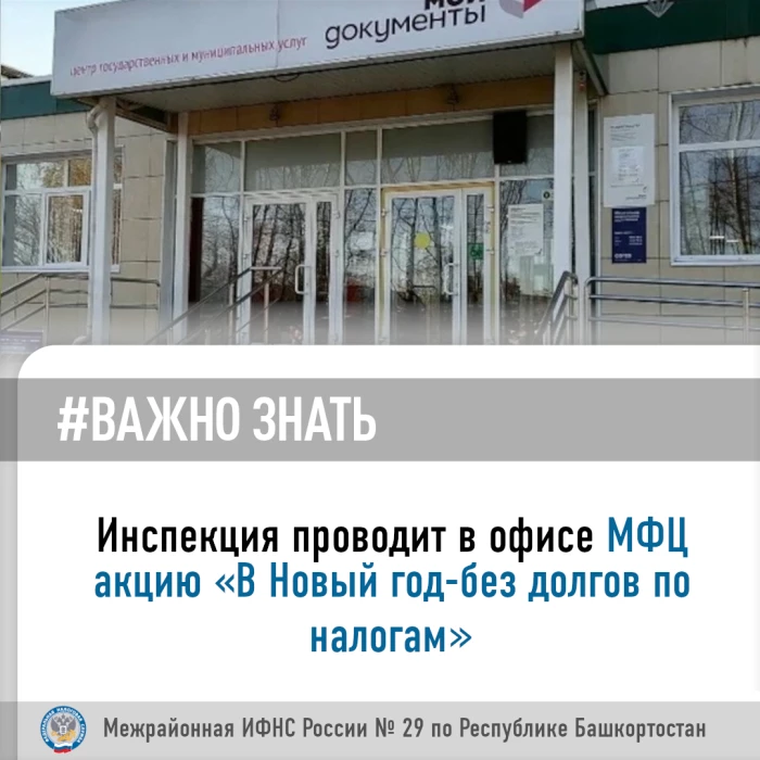 Межрайонная ИФНС России 29 по Республике Башкортостан совместно с Республиканским государственным автономным учреждением Многофункциональный центр предоставления государственных и муниципальных услуг проводит акцию В Новый год без